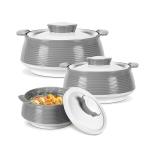 MILTON Venice Jr. Insulated Inner Stainless Steel Casserole, Set of 3, (450 ml, 850 ml, 1.35 litres), Grey | Double Walled | Hot & Cold