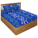 MORADO Premium Poly Cotton Double Bedsheet(228cmX228cm) with 2 Pillow Covers(43cmX68cm) Blue Leaf