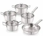 Neelam Stainless Steel Cookware 22G Induction Bottom Sauce Pot with Glass Lid and Fry Pan (Set of 5)