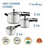 Neelam Stainless Steel Neo Pressure Cooker Combo Set -2 Litres, 3 Litres & 5 Litres, Inner Lid (Induction Friendly)