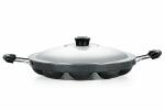Nirlon 12 Cavity Appam Patra Paniarakkal Appam Maker Appam Patra Non-Stick Ponganal Maker 22.5 cm Diameter Paniarakkal with Steel LID (Aluminium, Non-Stick) Appe[3_mm_AP12]