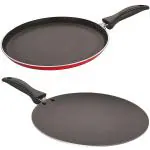Nirlon Aluminium Black Heavy Gauge Non Stick Flat Pan Flat Dosa Tava Griddle Concave Roti Tawa Kitchen Cooking Combo Set - 3.2 Ft+Ct (Pack Of 2)
