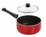 Nirlon Aluminium Non Induction Nonstick Coated Sauce Pan/Milk Pot/Tea Pan with Glass Lid, 16 cm, Red Color