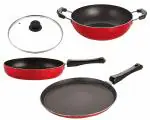 - Package Contents :: Flat Tawa 11 - 26cm | Fry Pan 10 - 20cm - 1.1 Ltr | Kadhai 11 - 20cm - 1.5 Ltr |1 Glass Lid