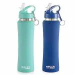 NIRLON Flip Bot Stainless Steel Sipper Rubber Finish Water Bottle with Straw Lid Pack of 2 |Leak Proof|Office|Gym Bottle|Home|Kitchen|Hiking|Treking Bottle|Travel Bottle [Aqua Green & Blue|750ml]