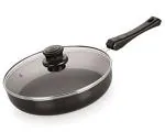 Nirlon Fry Pan with Glass Lid, Heavy Guage 3mm Thickness Aluminum Cookware for Induction.
