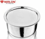 NIRLON Hammered Triply Stainless Steel Tope/Patila with Stainless Steel Lid | 14cm | Silver (Induction and Gas Stove Friendly)