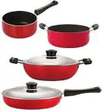 Nirlon Red Aluminium Non-Stick Cookware Set with Steel Lids 4 pcs (FP12-DKDM-SPM-CS22)