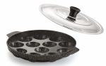 NIRLON Non-Stick Black 12 Cavity Appam Paniyarakkal Paddu Tawa with with 2 Side Handle, Stainless Steel Lid