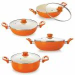 Nirlon Orange Ceramic Non-Stick Cookware Set 4 pcs (CC_ DKD22_ DKD24_ DKD26_ Cass24)