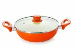 Nirlon Orange Ceramic Non-Stick Kadhai with Glass Lid 2 L