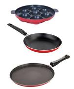 Nirlon Red Aluminium Non-Stick Cookware Set 3 pcs (FT11_ TP22_ AP7)