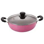 Nirlon Pink Orchid Granite Aluminium Non-Stick Kadhai with Glass Lid 3 L