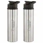 Nirlon Silver Stainless Steel Single Wall Water Bottle - Flip Cap Variant, 900 Ml Capacity (Pack Of 2)