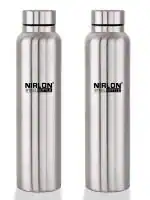 NIRLON Stainless Steel Fridge Water Bottle/ Refrigerator Bottle/ Single Wall/ Leakproof, Silver, 1000 ml, Pack of 2