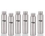 NIRLON Stainless Steel Fridge Water Bottle/ Refrigerator Bottle/ Single Wall/ Leakproof, Silver, 1000 ml, Pack of 6