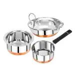 Omega Stainless Steel Copper Bottom Cookware Set Big - 3Pcs (Tope- 1.1L, Saucepan- 1.2L, Kadai-1.2L)
