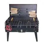 Royal Deals Black Aluminium Portable Folding Barbecue Grill with Skewers 10 pcs (46 cm x 27 cm)