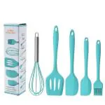 P-Plus International Premium Silicone Kitchen Utensils Set (5 Piece) in Hygienic Solid Coating Blue