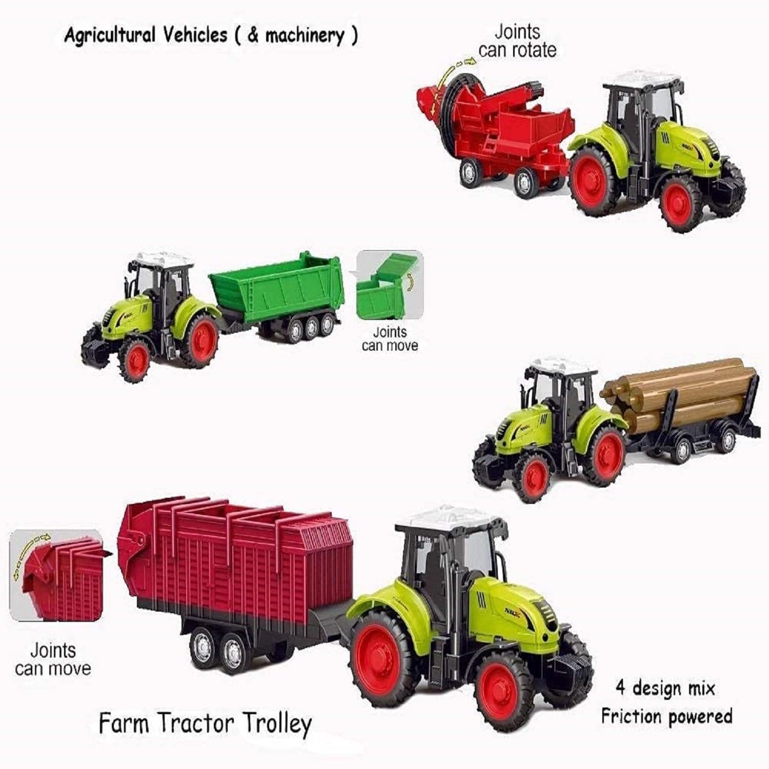 PARVLUXE Truck Exclusive Collection of Vehicles Tractor Kids Different Trolley Collect Them Friction Powered Farmer (4 PCS 4 in 1 Tractor) Best for Kids and Also Best for Gift.
