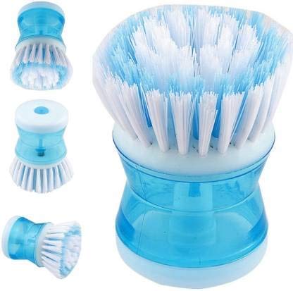 - It scrubs pots, greasy dishes, pans, tiles with ease. you may have to add water for different consistencies of liquid soaps. It is dishwasher safe and not to be used for non-stick surfaces. It saves about 60% of liquid soap and is economic to use.