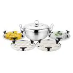 Prabha Heavy Gauge Bottom Stainless Steel Multi Kadhai, Idli Maker, Momos Maker, Dhokla Maker with 6 Plates, Stainless Steel Lid, 2 Big Idli Plates(7 Cavities Each), 2 Dhokla, 1 Small Idli, 1 Steamer