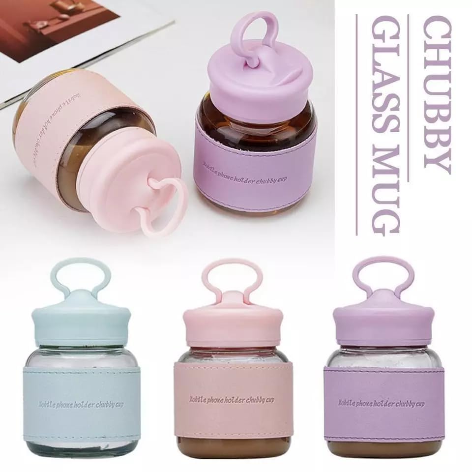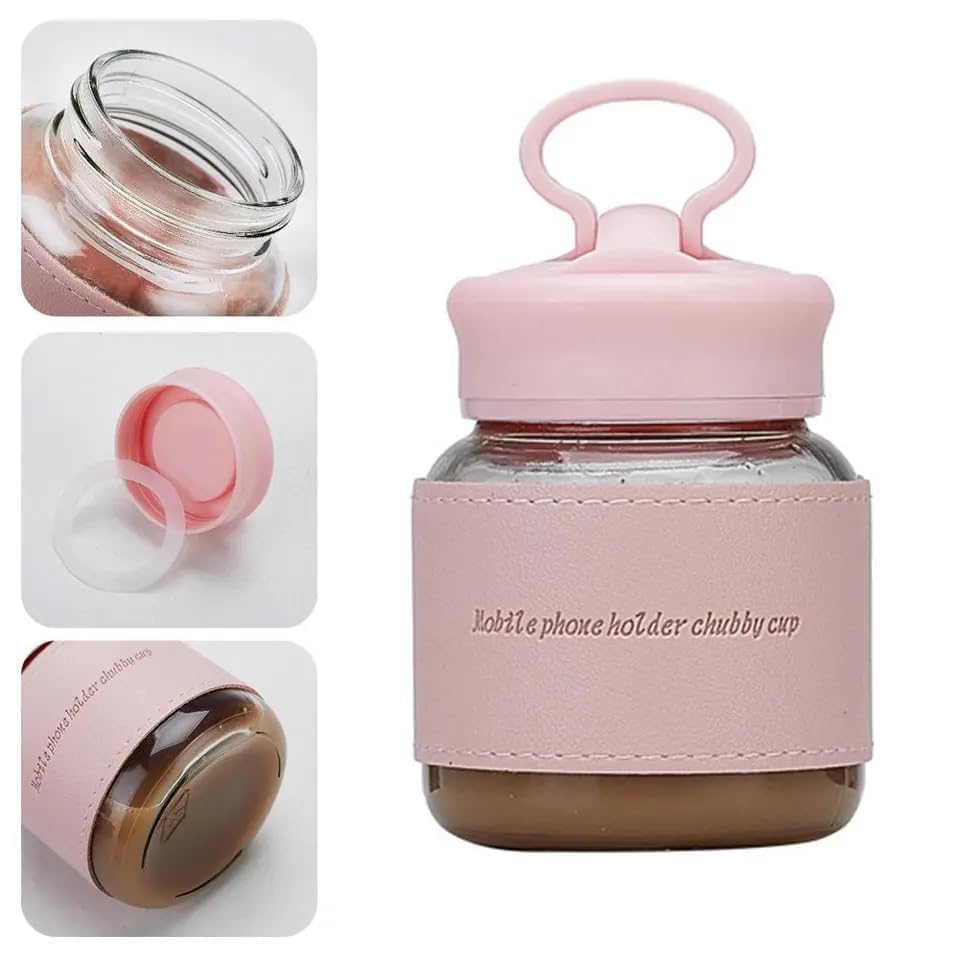 PRAYAN ENTERPRISE Portable Handle Mini High Borosilicate Shaker Cute Fat Glass Water Cup, Mobile Phone Stand,Coffee, Juice, and Smoothies, Perfect for Hot & Cold Beverages pani ki bottle