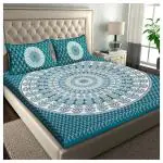 RajasthaniKart 100% Cotton 144 TC Double Bedsheet(232 cm X 218 cm) with 2 Pillow Covers(68 cm X 42 cm) Green Rangoli