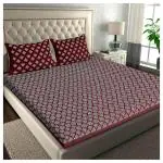 RajasthaniKart 100% Cotton 144 TC Double Bedsheet(232 cm X 218 cm) with 2 Pillow Covers(68 cm X 42 cm) Maroon Striped