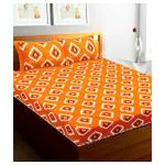 RajasthaniKart 100% Cotton 144 TC Double Bedsheet(232 cm X 218 cm) with 2 Pillow Covers(68 cm X 42 cm) Orange Checkered