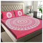 RajasthaniKart 100% Cotton 144 TC Double Bedsheet(232 cm X 218 cm) with 2 Pillow Covers(68 cm X 42 cm) Pink Rangoli