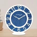 Random Blue Jeans Texture 8 Inches Plastic Wall Cum Table Clock for Home / Office, ( White Frame)