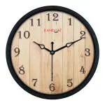 Random Wooden Art 8 Inches Plastic Wall Cum Table Clock for Home / Office, (Black Frame)