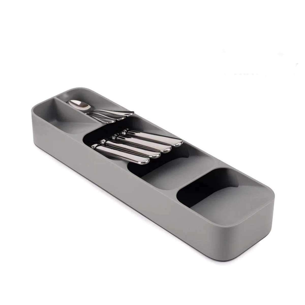 - This clever drawer organizer can be expanded or compacted to fit a range of different drawer sizes and comes with several compartments for all your cutlery and utensils.