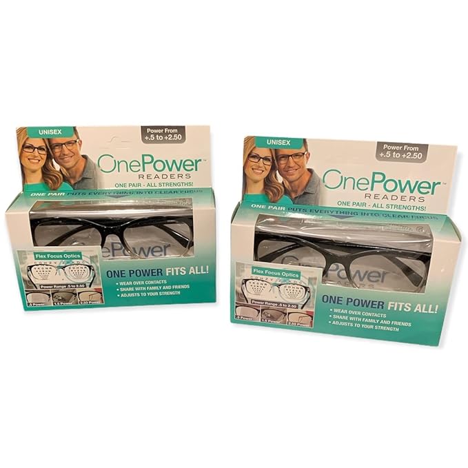RK BROTHERS GROUP One Power Readers Reading Glasses for Women Men Read Small Print and Computer Screens Adjustable Eye glasses Flex Clear Focus Auto Adjusting Optics Reading Glasses 0.5X - 2.5X - Rectangle Frame(Pack Of 1)