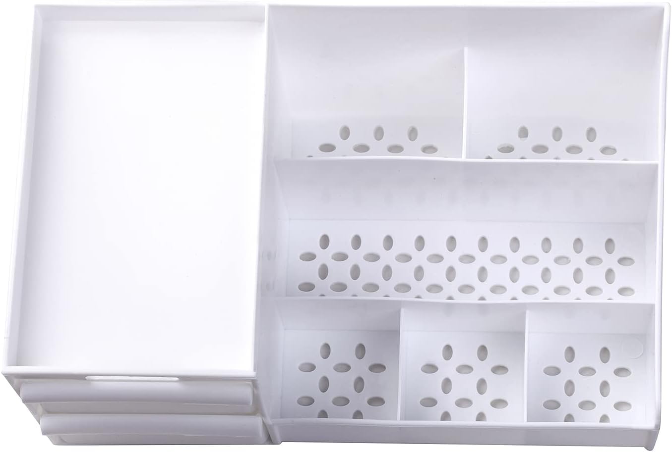 - This desktop makeup organizer in elegant white offers a spacious and well-designed solution for storing and organizing all your cosmetic and beauty essentials