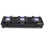 Ruwa Glass Top 3 Burner Gas Stove | Manual Ignition | LPG Compatible | ISI Certified