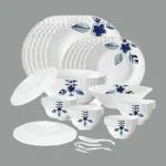SARVAM CART Twilight Silk Series Opalware Dinner Set | 36 Pieces for Family of 6 | Microwave & Dishwasher Safe | Bone-Ash Free | Crockery Set for Dining & Gifting | Plates & Bowls | White