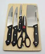 SAVREEN Chopping Board with Knife Set and Scissor 6 Piece Stainless Steel Kitchen Knife Knives Set with Knife Scissor Wooden Chopping Board(Silver & Black)(Stainless Steel)