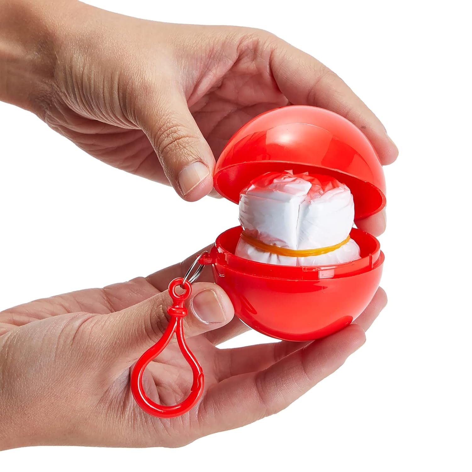 - Handy carabiner lets you clip these balls to backpacks and purses. When that unexpected rain day comes, with a twist of the ball, you will be protected from the rain!
