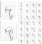 SHALVI 30Pcs Self Adhesive Wall Hooks, Heavy Duty Sticky Hooks for Hanging, Waterproof Transparent Adhesive Hooks for Kitchen, Bathroom