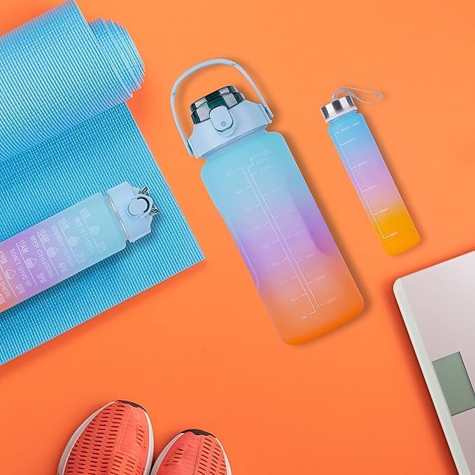 SHAYONAM Pack of 3 Motivational Water Bottles - BPA-Free Transparent Bottles for Daily Hydration Goals