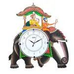 Shilpacharya Handicrafts Ambabari Wooden Elephant Ajanta Wall Clock 16 inch x 15 inch