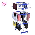SHP SONI 3 Layer jumbo Space Unique Look Heavy Duty Rust-Free Stainless Steel Double Pole Cloth Drying Stand | Clothes Dryer Stands | Laundry Racks with Wheels for Indoor | Outdoor | Balcony (Blue Drying Stand)