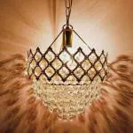 SHRI MAHAL ANTIQUES Glass Octagon Beads Crystal Hanging Light Chandelier Ceiling Lamp (Gold)