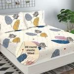 Shruvis Ekart 244 TC Cotton, Microfiber King Floral Fitted (Elastic) Bedsheet (Pack of 1, nighty)