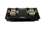 Sigri-wala Dark Black Steel Glass Top MANUAL Ignition Cast Iron 2 Burner Gas Stove