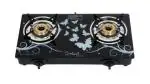 Sigri-wala Black Steel Glass Top Auto Ignition Cast Iron 2 Burner Gas Stove