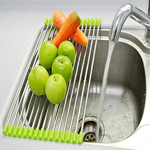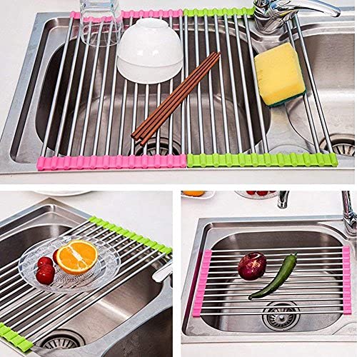 SS COLLECTION Roll Up Dish Drying Rack, Over The Sink Rack Kitchen Dishes Cups Fruits Vegetables Drainer, Foldable Sink Rack Mat Stainless Steel Wire Dish Drying Rack for Kitchen Sink Counter [PACK OF 2]