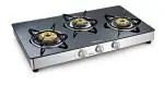 Sunflame Crystal Black Stainless Steel Glass Top 3 Brass Burner Gas Stove